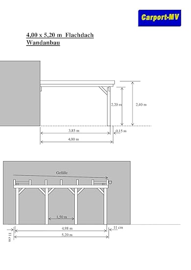 Carport 5 00 X 5 20 M Flachdach Larche Kvh Natur Wandanbau